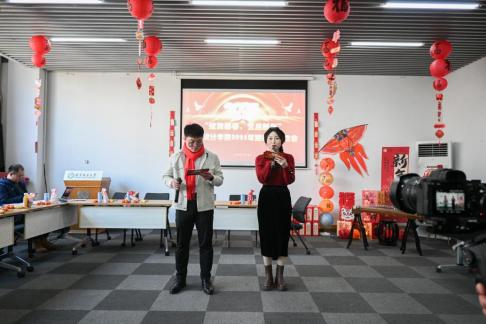 祥龙回首辞旧岁,金蛇起舞迎新年。1月10日,艺术设计学院工会于香樟苑201室成功举办"蛇舞馨春,艺启新年"2025年迎新春联欢会。全体院领导与教职工欢聚一堂,共同辞旧迎新、展望未来,书写团结奋进的崭新篇章。联欢会由院团委书记、学工办主任王春、辅导员李亮两位老师主持。