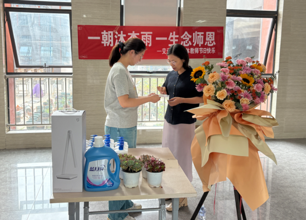 为让祝福更添心意,活动还特别设置了幸运抽奖环节。工作人员提前准备了层次丰富实用的奖品:护眼台灯、洗化套装、多肉绿植。更贴心的是,所有参与活动的老师都能获得一份定制纪念品,确保每位"园丁"都能感受到节日的关怀。