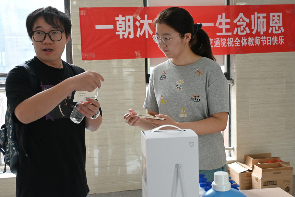"一朝沐杏雨,一生念师恩。"在秋风送爽、桃李芬芳的时节,第41个教师节如期而至。9月10日上午,交通院工会联合团委、学生会,在教九楼大厅精心策划了一场以"贺卡传情+幸运抽奖"为核心的教师节祝福活动。百余名师生齐聚一堂,用创意与温情共庆佳节,为全院辛勤耕耘的"园丁"们送上最诚挚的节日问候。