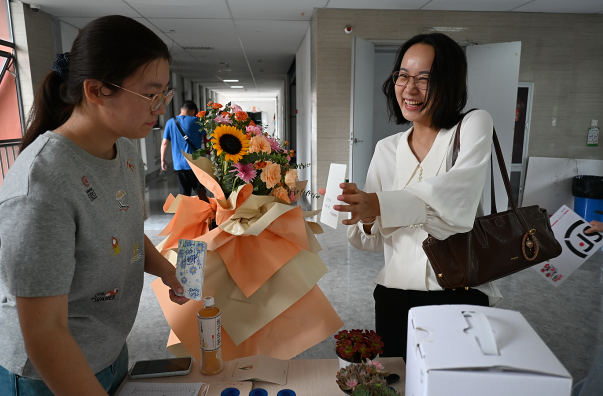 "奖品虽不贵重,但特别实用,能看出学院的用心。"一位抽中绿植的老师表示。而活动地点选在教九楼大厅——老师们日常上班的必经之路,更让这份惊喜"不期而遇":许多老师刚走进办公楼,就被热闹的活动氛围吸引,在接过贺卡、参与抽奖的过程中,开启了充满暖意的节日一天。