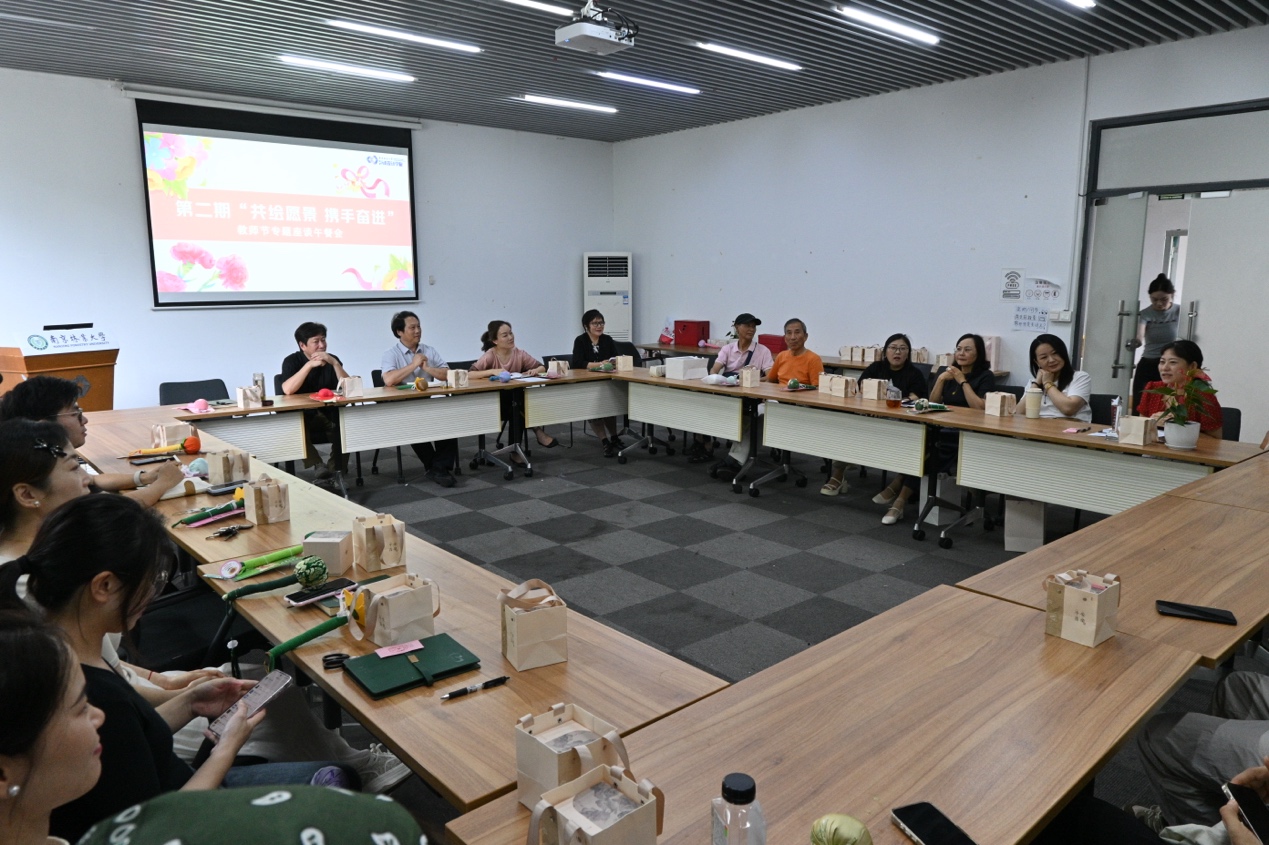 接着,第二期“共绘愿景·携手奋进”教师节专题座谈会温馨启幕。活动伊始,与会师生一同观看了教育家精神系列微视频,共同感受师道传承的厚重与使命的庄严。随后,学生们向教师献上了亲手制作的艾草锤,以及周怡彤老师指导完成的陶瓷艺术作品,每一份礼物都饱含着深深的敬意与感恩。院党委书记陶文娟与院长祝遵凌共同为从教30年的教师颁发荣誉奖杯及礼品,向他们数十年的坚守与奉献致以崇高敬意。座谈交流环节,学院领导热情洋溢地致辞,回顾学院发展历程与成就,并擘画未来蓝图与发展方向。与会教师纷纷踊跃发言,分享教学心得,畅谈育人感悟。现场气氛温馨热烈,大家畅所欲言,进一步凝聚了共识,激发了团结奋进、共谋发展的坚定信心与磅礴力量。