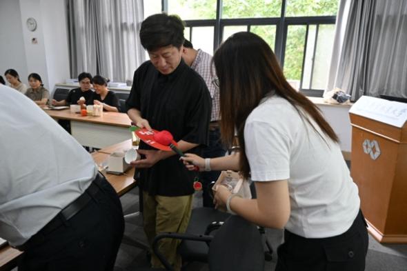 活动首个环节是“‘艾’健康·爱老师”艾草锤手工制作。艾草,在中国文化中承载着健康与平安的美好寓意。学生们现场指导老师们亲手制作艾草锤,巧妙地将传统寓意融入现代手工艺之中。大家在互动中不仅尽情展现出创造力与匠心,还舒缓了日常教学工作的疲惫,进一步凝聚了团队的力量。