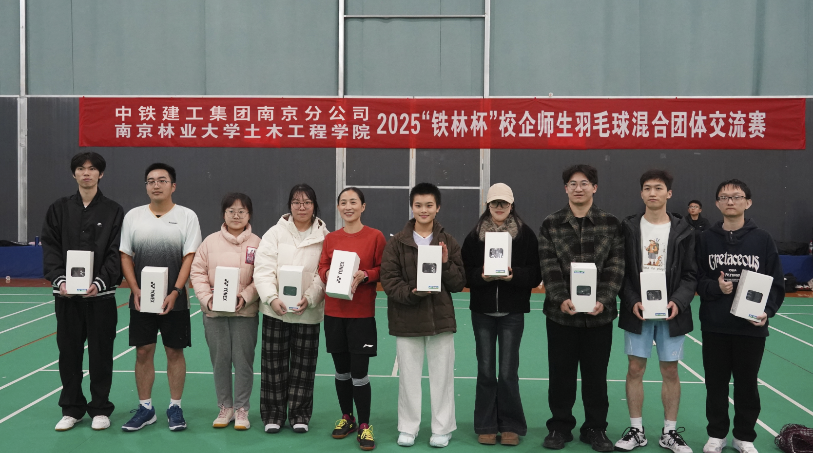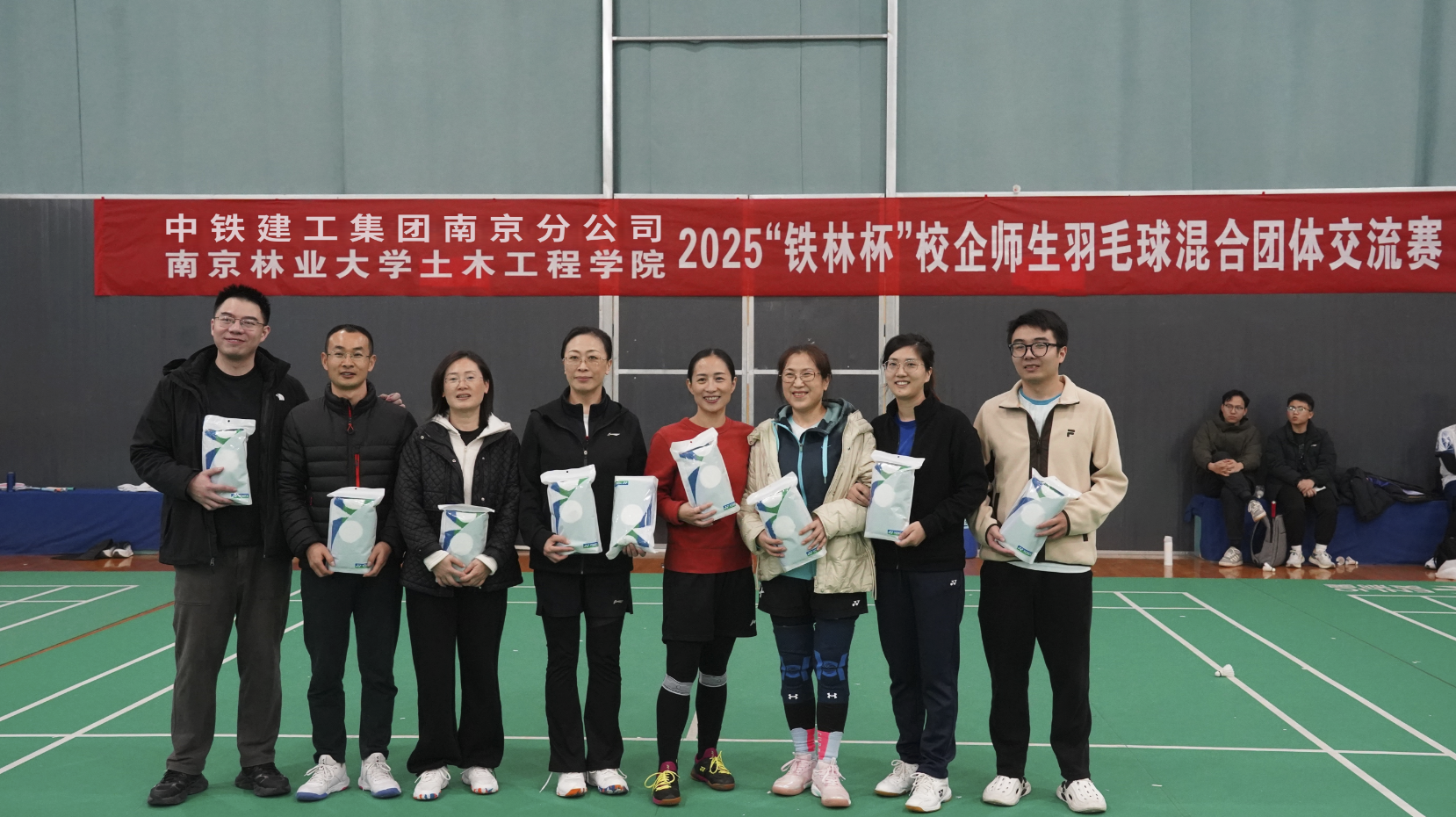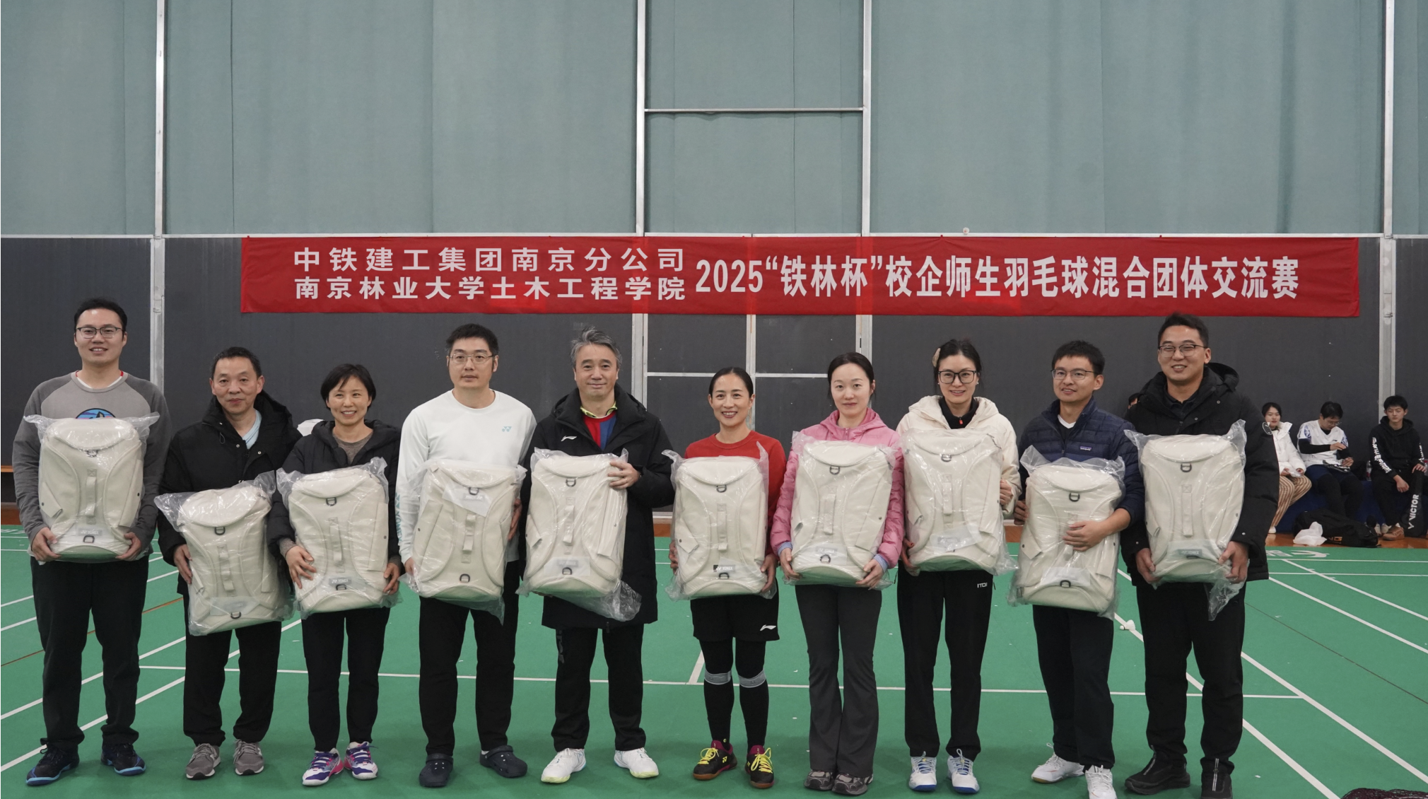 2025年12月6日下午,中铁建工集团南京分公司、南京林业大学土木工程学院在学校新体育馆羽毛球场举办了第七届“铁林杯”校企师生羽毛球混合团体交流赛,中铁建工集团南京分公司职工、我院教职员工、研究生、本科生近100人报名参加了此次活动,赛事规模创造了我院羽毛球比赛的历史新高。