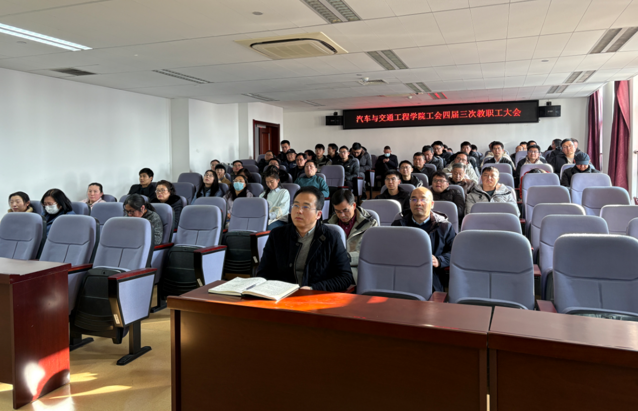 2026年1月13日下午,交通院在9D501召开了四届三次教职工大会。本次会议以维护教职工合法权益、凝聚师生发展共识为核心,聚焦教职工普遍关切的问题,听取学院年度工作报告。